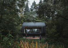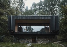 Na břehu Sázavy, v krajině sevřené skalami a provoněné borovicemi, vyrostla nová chata, která citlivě navazuje na příběh svojí předchůdkyně. Původní stavbu zde připomíná už jen kamenná podezdívka, která přežila požár, a stala se základem i symbolem nového začátku. Architekti ze studia Mimosa ji využili nejen jako konstrukční prvek, ale i jako přirozenou ochranu před řekou. Chata tak stojí mírně nad terénem, s nadhledem nad hladinou i každodenním shonem.