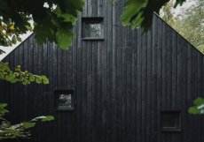 Novostavba je lehká, dřevěná, téměř nenápadná. Její skelet opláštěný smrkovou biodeskou uvnitř a opálenými modřínovými prkny zvenčí vytváří kontrast mezi jemností a odolností. Opalování dřeva zde není jen estetickým gestem, prodlužuje také životnost materiálu, ale také dává chatě syrovější výraz, který ji chrání před nechtěnou pozorností. Zároveň v sobě nese tichou vzpomínku na oheň, jenž stál na počátku její obnovy.
