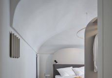 Byt vznikl jako součást rekonstrukce pavlačového domu z druhé poloviny 16. století na Valdštejnském náměstí. A to je pro projekt podstatné. Návrh vznikl v památkově chráněné struktuře s jasnými pravidly. Klenutý strop, proporce místnosti i dohled památkářů ovlivnily prakticky vše.