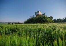 Na bunkru uprostřed polí vyrostla dřevostavba pro turisty