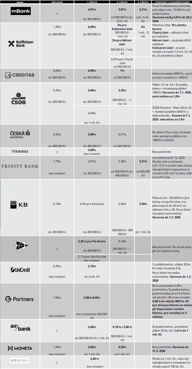 Žebříček lednových spořicích účtů