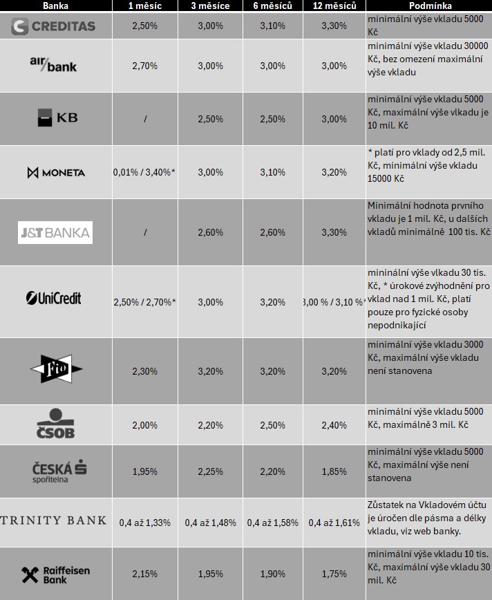 Úroky na termínovaných vkladech letos nejčastěji míří do pásma dvou až tří procent ročně. Některé banky umí i 3,3 procenta, ale jsou to spíše výjimky. Zároveň platí, že v době, kdy spořicí účty často nesou podobně (a někde i víc), dává termíňák smysl hlavně tomu, kdo si nechce každý měsíc hlídat, jestli plní podmínky pro vyšší úrok na spořicím účtu. Banky totiž u spoření stále častěji odměňují pouze aktivní klienty.