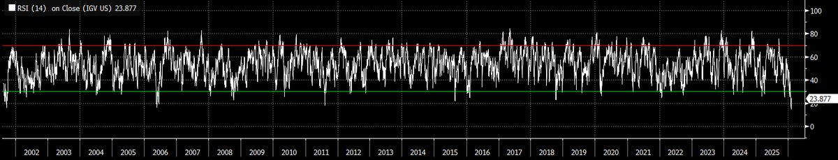 Softwarové akcie proto čeká brutální rally vzhůru, míní investiční banka Jefferies. Tak negativní sentiment vůči jednomu konkrétnímu segmentu, jaký nyní panuje ve vztahu právě k softwaru, se prý jen tak nevidí. Burzovně obchodovaný fond BlackRocku zaměřený na softwarové akcie byl tento týden nejvíce přeprodaný v celé své historii, tedy za poslední takřka čtvrtstoletí (ukazuje to třeba graf agentury Bloomberg níže). Investoři se softwarových titulů zbavují bez rozlišení, a tak stádovitě, že nad tím tento týden kroutil hlavou i šéf Nvidie.