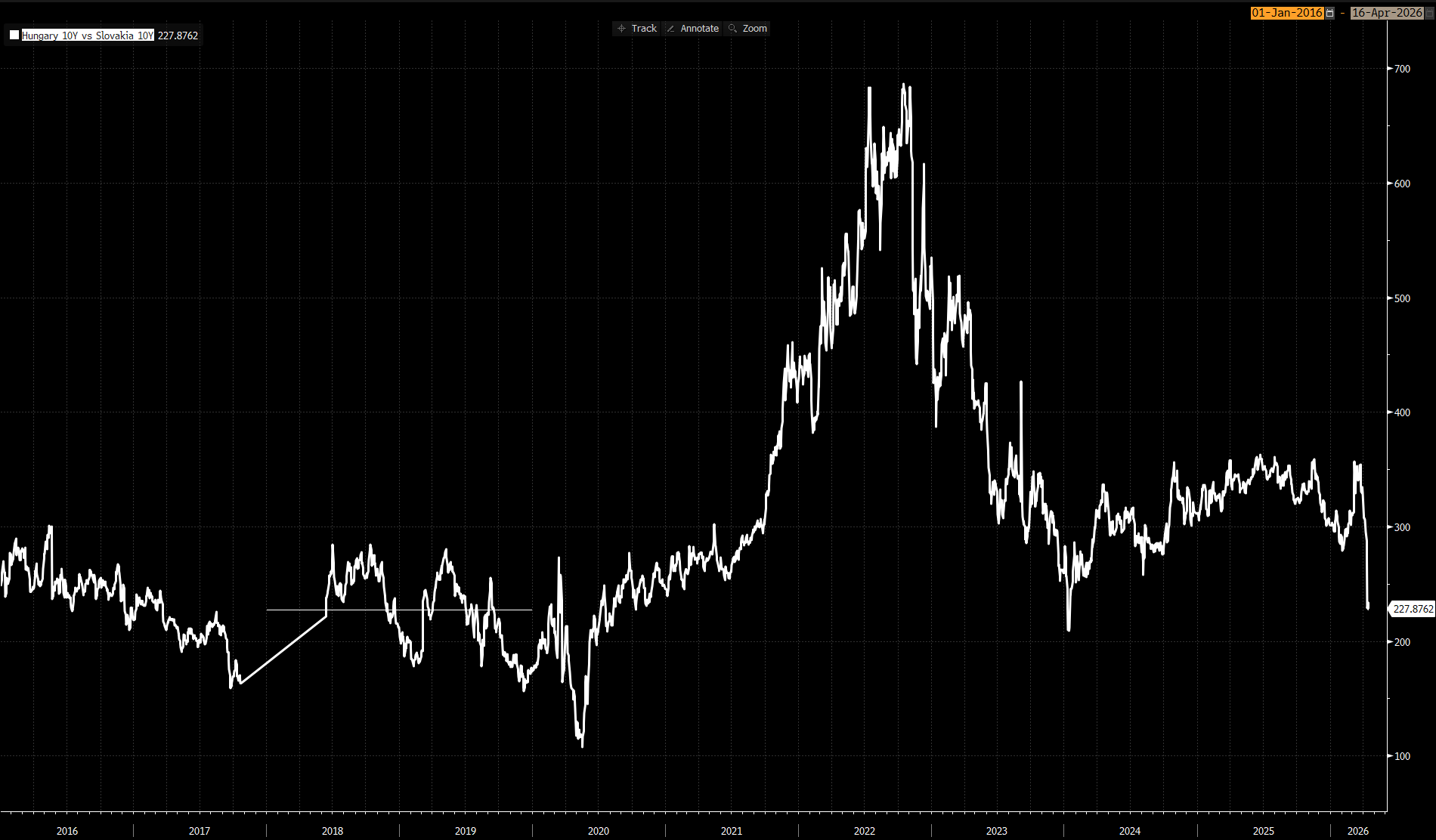 Pokud by trhy více věřily, že Magyar skutečně Maďarsko do eurozóny přivede, byli bychom svědky výraznějšího přivření spreadu ve výnosech maďarských a slovenských dluhopisů.