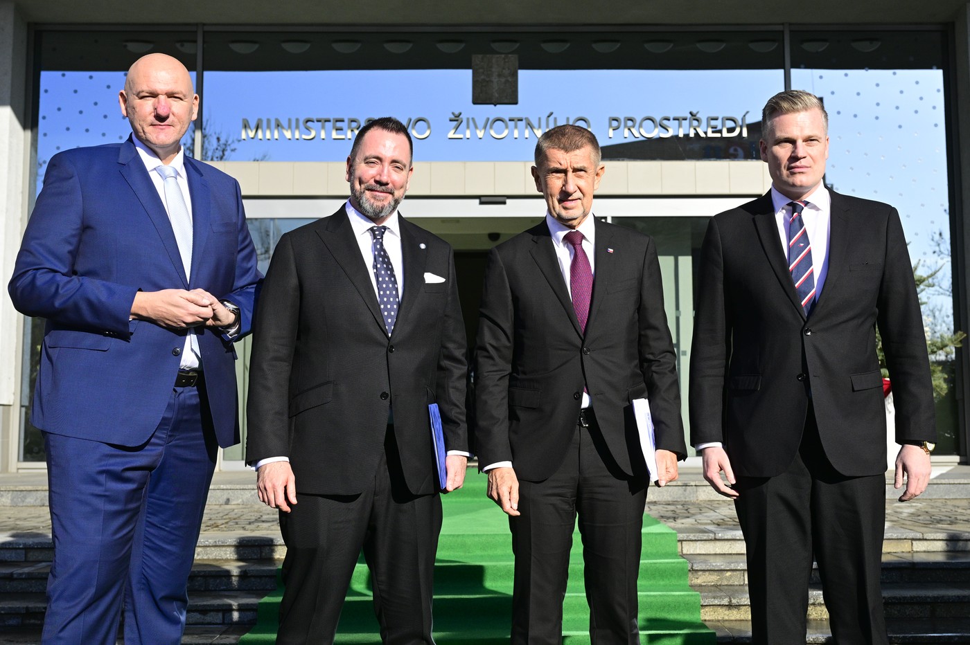 Náměstek Pavel Vlček, ministr životního prostředí Igor Červený, premiér Andrej Babiš a vládní zmocněnec pro Green Deal Filip Turek ČTK