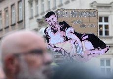 Lidé během projevů na Staroměstském náměstí skandovali „Babiše do koše“. Mají transparenty s nápisy Babišovy koblihy ještě draze zaplatíme, Nechceme proruské kolaboranty v čele státu a Čarodějovi z Agrofertu a jeho kumpánům je milejší hrabáni než obrana národa před zlem z Ruska.