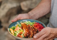 Tempehové kombo je ochucené veganskou omáčkou z uzené papriky, tamari a zeleninového demi-glace, který vzniká ze zeleniny, jež by jinak skončila jako odpad.