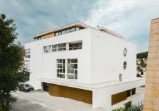 Pavel Šánek: La Villa byla specifická tím, že šlo o poslední proluku v centru, sevřenou mezi známými hotely. Svažitý terén, z každé strany jiný soused – od velkých hotelů až po Jurkovičovy domy. Přesně ten typ komplexního zadání, které mě baví. Dům jsme tvarovali podle terénu a jednotlivých vazeb tak, aby působil jako vila v zeleni. Když lidem řeknu, že má sedm pater, často nevěří. Spodní tři horizontální úrovně pracují s různými materiály, nad nimi je vilová hmota o třech patrech a na vrchu střešní penthouse. Díky té hře hmot a správnému měřítku pak budova z ulice působí spíš jako menší rezidence než sedmipodlažní dům v centru lázní.