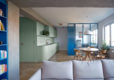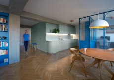 Byt v panelovém domě z 50. let v pražských Holešovicích prošel kompletní rekonstrukcí. Architektky ze studia B² Architecture odstranily většinu příček a do středu dispozice vložily výraznou zelenou vestavbu, která organizuje celý prostor.