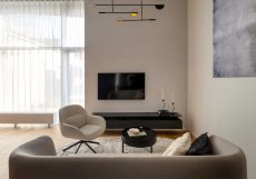 Byt je zároveň vybaven systémem chytré domácnosti, který umožňuje ovládat osvětlení, vytápění, chlazení, stínění i zabezpečení prostřednictvím aplikace nebo centrálního panelu. Technologie reagují na denní dobu i množství světla a přispívají k energetické efektivitě, aniž by narušovaly vzhled interiéru.