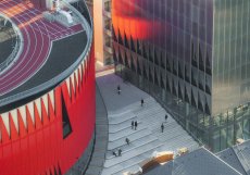 Koncept vychází z myšlenky otevřené městské struktury. Prosklený parter obepínající arénu i sousední nárožní budovu propojuje ulici Tolstého s parkem Smetanovy sady, univerzitním kampusem a okolními čtvrtěmi. Mezi oběma hlavními objekty vzniklo pobytové schodiště a veřejný amfiteátr, které proměnily dříve bariérový prostor v přirozené místo setkávání.