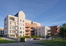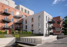 Součástí projektu jsou také dvě nové bytové budovy. První z nich uzavírá nové náměstí a má tři nadzemní podlaží. Architekti ji navrhli ze světlé cihly s bílými kovovými prvky a plochou střechou. Oproti historickým budovám se záměrně výrazově odlišuje.