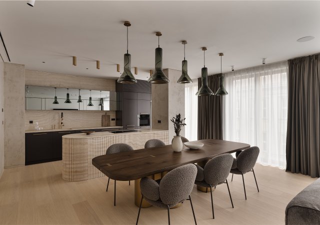Na Pařížské 25 vznikl byt, který nestaví na dekoracích, ale na nejdražších materiálech a technologiích. Travertin, zakázková výroba a chytrá domácnost ukazují, jak vypadá luxus, když se nešetří.