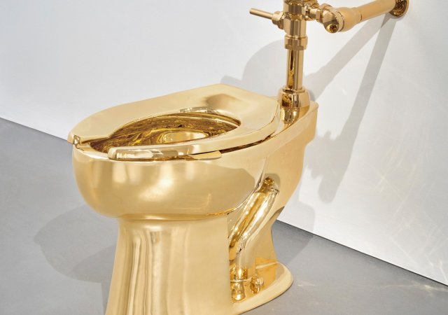 Zlatá toaleta od italského konceptuálního umělce Maurizia Cattelana se v noci na dnešek prodala v newyorské aukci za 12,1 milionu dolarů (250 milionů korun). Uvádí to na svých stránkách společnost Sotheby´s, která prodej organizovala. Cena bez poplatků a přirážek zhruba odpovídá hodnotě materiálu použitého na výrobu díla, které je podle autora parodií na nadměrné bohatství.