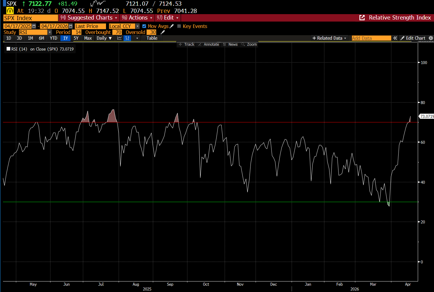 Americké akcie – konkrétně ty v indexu Standard & Poor’s 500 – se z pásma přeprodání přetočily do nynějšího pásma překoupení během pouhých 11 dní. Do pásma překoupení se dostaly už ve čtvrtek, přičemž dnešní otevření Hormuzského průlivu jejich překoupenost ještě umocňuje (viz graf níže).