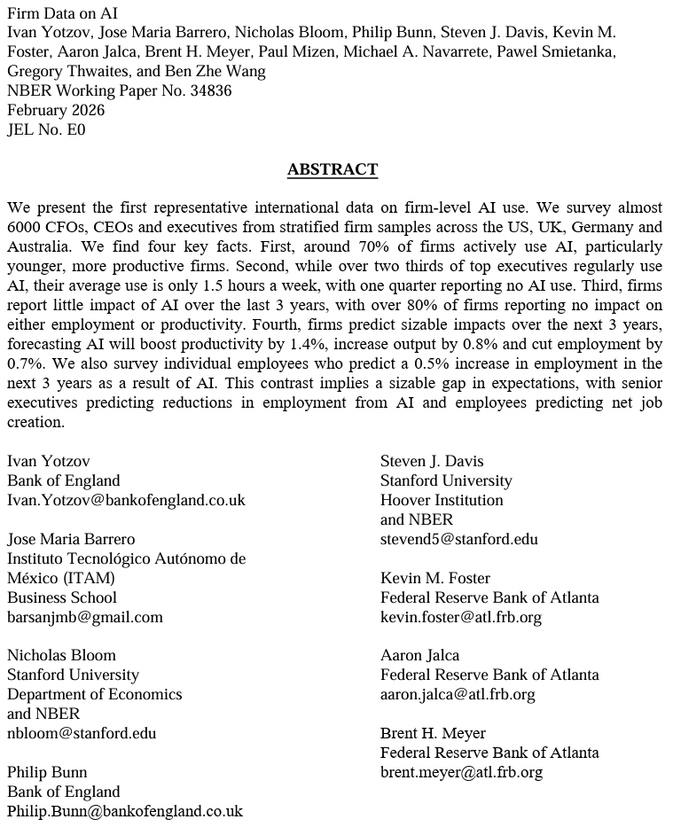Tak lze shrnout dosud nejrozsáhlejší studii jejího využití mezinárodní podnikovou a firemní sférou, kterou tento měsíc zveřejnil americký Národní úřad pro ekonomický výzkum (abstrakt viz níže). Autoři studie – ekonomové americké i britské centrální banky či Stanfordu – se tázali 6000 vrcholných manažerů podnikové sféry USA, Británie, Německa a Austrálie.